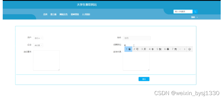 Key words: College Students' Part-time website; Springboot framework; Mysql database