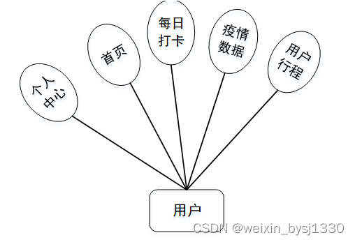 (2)系统用户:首页、个人中心、更多管理(每日打卡、疫情数据、用户行程)等功能。用户用例如图3-2所示。