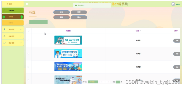 轮播图管理,在轮播图管理页面中可以查看轮播图、标签等内容,还可以根据需要进行修改或删除等操作,如图5-3所示。