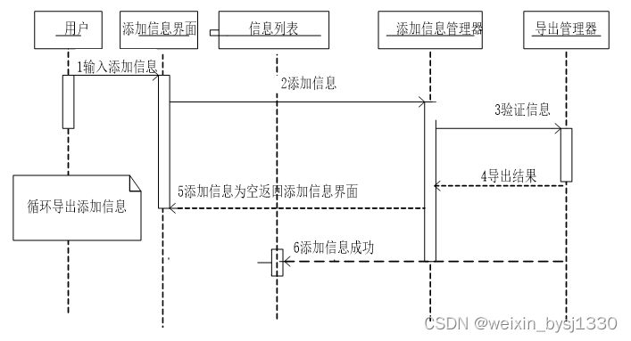 管理员以及用户登录后均可进行添加信息操作,添加信息模块顺序图如图4-4所示。