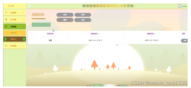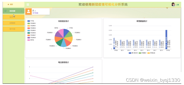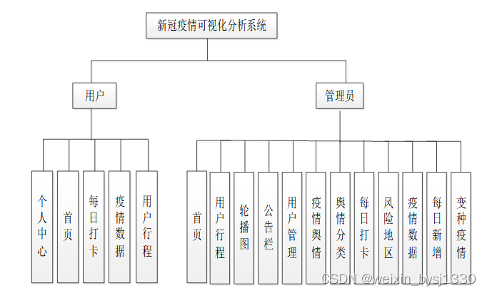 本新冠疫情可视化分析系统 主要包括两大功能模块,即管理员、员工用户模块。