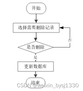 用户可选择要删除的信息进行信息删除操作,在删除信息时系统提示是否确定删除信息,是则删除信息成功,系统数据库将信息进行删除。删除信息流程图如图3-7所示。