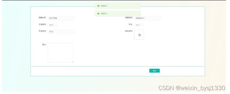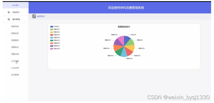 Specifically, in terms of system design, the B/S structure was adopted, and Java technology was also used for design on dynamic pages. MySQL database was used in the backend, making it an excellent subject competition management system.