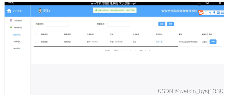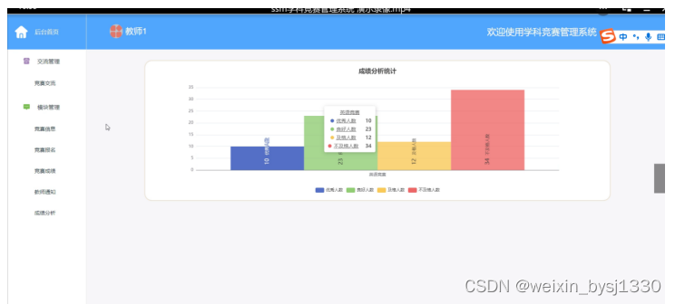 具体在系统设计上,采用了B/S的结构,同时,也使用java技术在动态页面上进行了设计,后台上采用Mysql数据库,是一个非常优秀的学科竞赛管理系统。