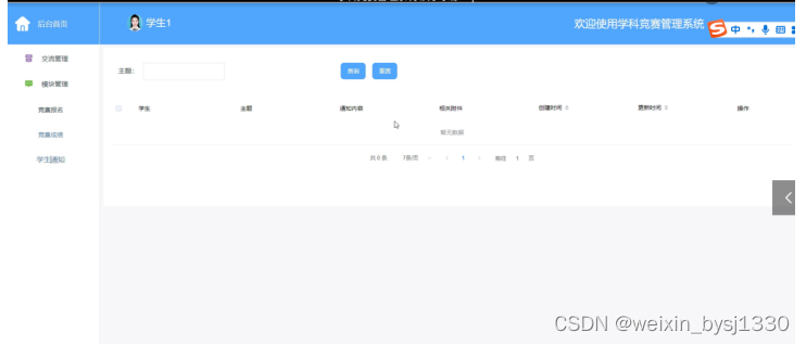 关键词 :学科竞赛管理系统;java技术;Mysql数据库;B/S结构