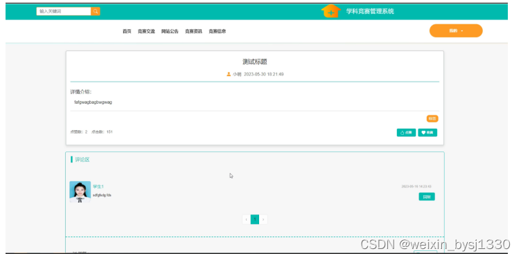 竞赛交流,在竞赛交流页面查看标题、详情介绍、评论区等信息完成竞赛交流,如图5-2所示。