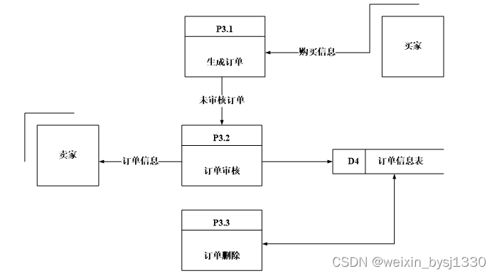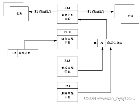 4、卖家填写新商品信息,点击“添加”按钮。 | 2、系统打开添加新商品界面。 3、系统检查管理员输入的商品信息是正确有效的。 5、系统将商品添加到数据库中。 6、系统提示“操作成功”。 7、系统跳转到商品管理界面。 | |