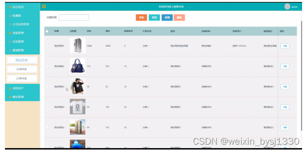 (2)商品管理:主要包括商品列表、商品类目管理、商品添加、商品信息管理等功能。