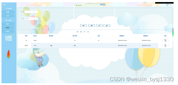 用户管理,在用户管理页面可以查看索引、用户名、密码、姓名、性别、头像等信息,并可根据需要进行修改或删除操作,如图5-10所示。