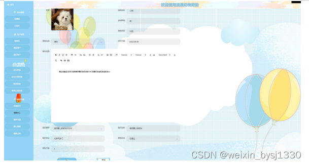 流浪动物救助系统的开发利用现有的成熟技术参考,以源代码为模板,分析功能调整与流浪动物救助系统管理的实际需求相结合,讨论了基于流浪动物救助系统管理的使用。