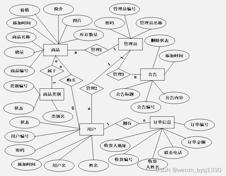 (3)确定好系统使用的技术,进行在线确认系统所划分的用户角色,并且根据用户角色划分确定所要设计的功能模块,对于超市小程序系统的设计主要划分别为管理员和用户角色,并所使用的功能模块也相应不同,但是系统的数据库实现的内容是交互的,用户可以随时根据自己的需求进行课程信息,对于系统工作人员可以根据自己的分管内容进行在线信息的处理及操作,管理员获取到所有用户的详细数据信息,并根据需求进行第一时间处理解决。