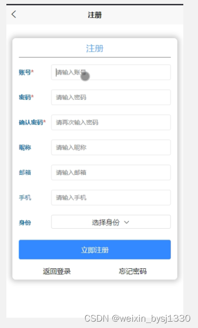 注册,通过填写账号、密码、昵称、邮箱、手机、身份等信息,输入完成后选择提交即可注册成功,如图5-2所示。