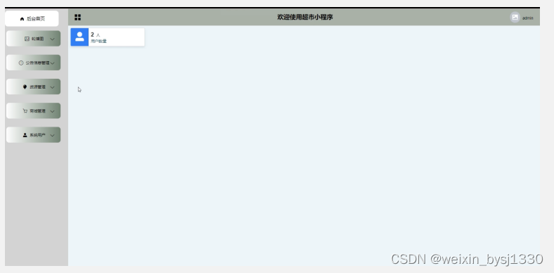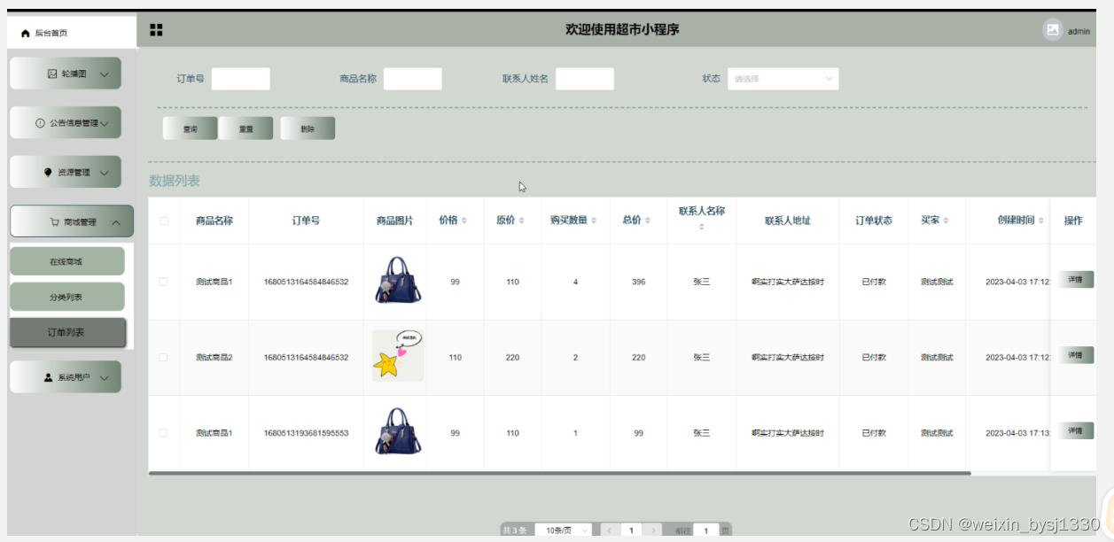With the rapid development of China's economy, people's demand for mobile phones is increasing, and various mobile software is also widely used. However, for data information management of mobile phones, various software for mobile phones is also highly favored by users. Supermarket mini programs are widely used by users. In order to facilitate users to manage data information of supermarket mini programs at any time, a management system based on django supermarket mini programs has been developed.