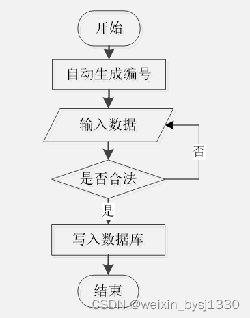 对于超市小程序,需要随时添加所需要的数据信息,对于用户添加信息,需要根据添加界面,根据选框的内容进行填写所要添加的数据信息,信息输入完成后判断数据信息是否符合要求,符合要求则添加完成,用户所添加的信息不符合要求,则需要返回到第一步,重新输入数据信息,再进行判断操作,如图3-2所示。