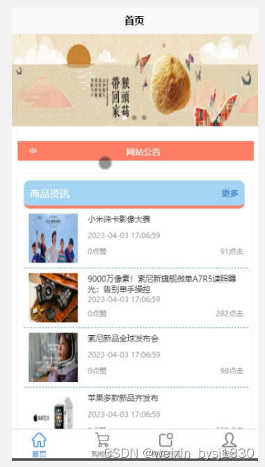 商城资讯,在商城资讯页面可以查看标题、资讯内容、封面等信息,并可对资讯进行点赞、收藏等操作。如图5-4所示。