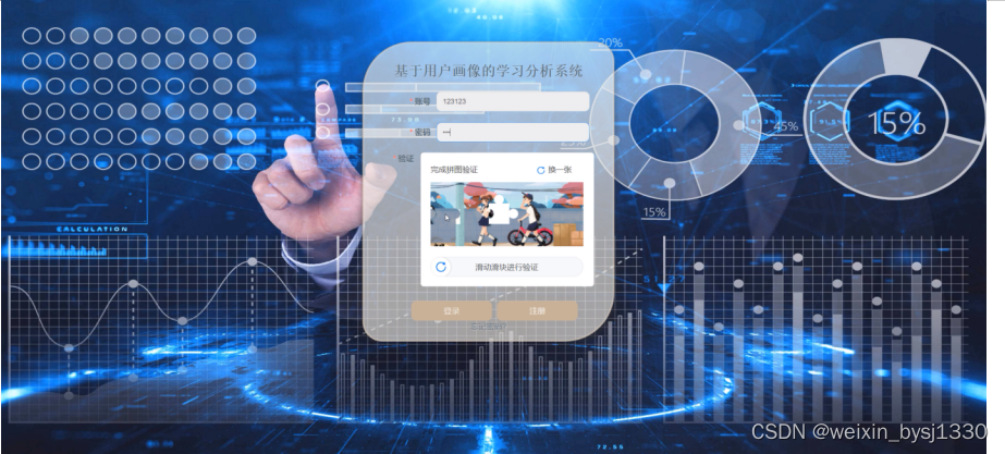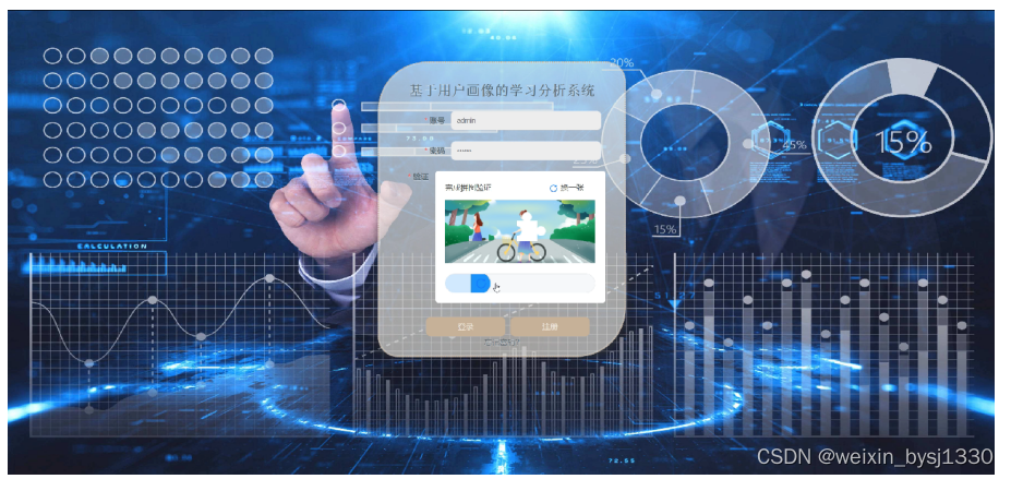 管理员登录,通过填写账号、密码、完成行为验证后登录即可进入基于用户画像的学习分析系统,如图5-1所示。