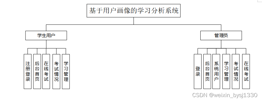 系统所要实现的功能分析,对于现在网络方便的管理,系统要实现用户可以直接在平台上进行查看所有数据信息,根据需求可以进行在线添加,删除或修改基于用户画像的学习分析系统信息,这样既能节省时间,不用再像传统的方式耽误时间,真的很难去满足用户的各种需求。所以基于用户画像的学习分析系统的开发不仅能满足用户的需求,还能减少原有不必要的工作量,大大提高了管理员的工作效率。