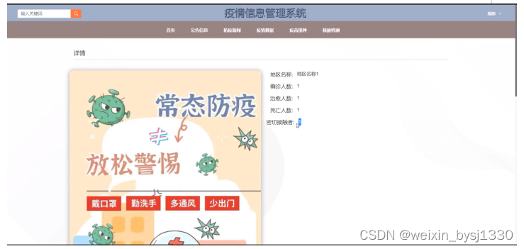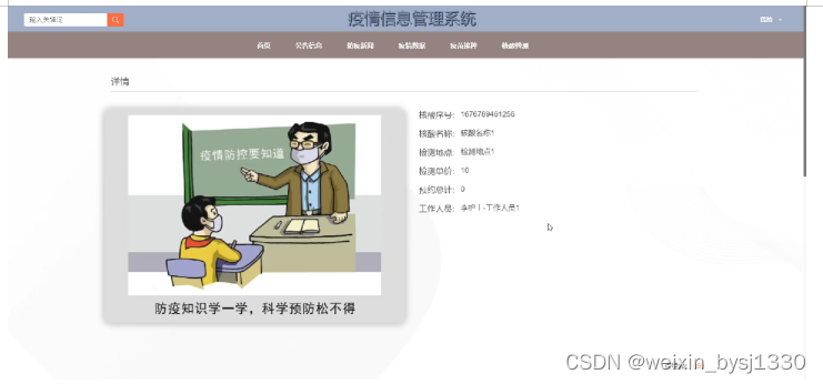 操作简单方便、系统界面安全良好:简单明了的页面布局,方便查询疫情信息管理系统管理的相关信息。