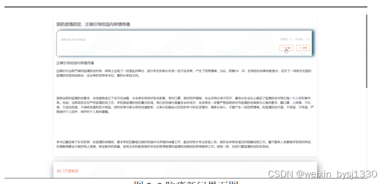 防疫新闻:用户在此页面可通过搜索查看防疫新闻信息,对防疫新闻可进行点赞、收藏、发表评论等操作,如图5-8所示。