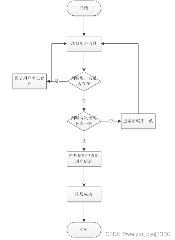 | 填写已存在的用户名 | 系统显示出提示信息,要求重新填写 | 一致 | |