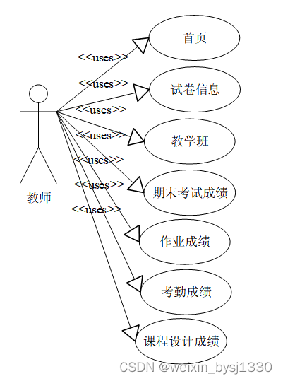 学生和课程存在成绩关系,关系为一对多,根据课程编号来将课程数据传入到成绩数据中,操作人为教师用户,然后生成成绩列表,学生查看个人历史成绩列表,可以进行数据销毁。