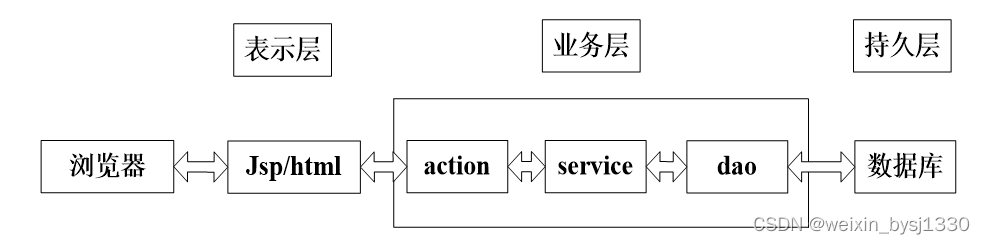 目前B/S体系的系统主要的数据访问方式是:通过浏览器页面用户可以进入系统,系统可以自动对用户向服务器发送的请求进行处理,处理请求是在系统后台中进行的,用户在浏览器页面上进行相应操作,就能够看到服务端传递的处理结果。毕业要求达成情况报告辅助生成系统主要分为视图-模型-控制三层架构设计。在视图层中,主要是操作在服务器端向客户端反馈并显示的数据,在模型层中,主要处理相关的业务逻辑、数据整合等,最后的控制层它介于视图和模型之间,主要是调整两层之间的关系,最终落实数据的传递。