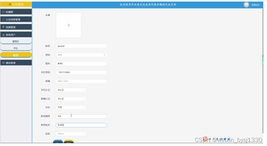 发布教师,并可以销毁某个教师,更新教师数据,模糊搜索教师数据等。