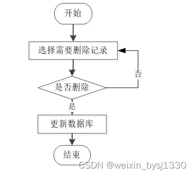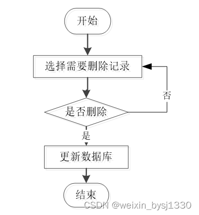 用户选择要删除的信息并单击Delete按钮。系统提示是否删除信息。如果用户想要删除信息,系统将删除信息。系统数据库删除信息。删除信息流程图如图3-5所示。