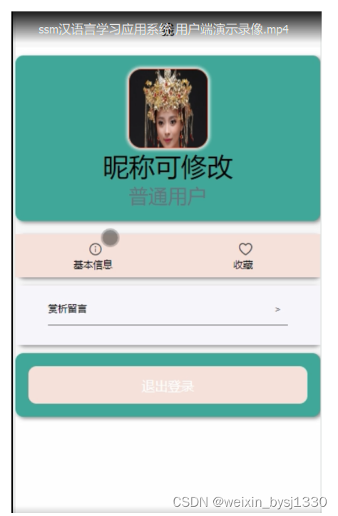 对于本汉语言学习应用系统的设计来说,它主要是采用后台采用java语言、SSM框架,它是应用mysql数据库、Android等技术动态编程以及数据库进行努力学习和大量实践,并运用到了APP的建设中在整个系统的设计当中,具体根据网上汉语言学习应用系统的现状来进行开发的,具体根据用户需求实现网上汉语言学习应用系统网络化的管理,各类信息有序地进行存储,进入汉语言学习应用系统页面之后,方可开始操作主控界面,系统功能包括管理员服务端:后台首页、公告栏、交流管理(文化论坛、论坛分类)轮播图、资源管理(汉语文化、文化分类)系统用户(管理员、系统用户)模块管理(赏析留言);用户客户端:首页、文化论坛、汉语文化、我的(个人中心、收藏、赏析留言)等功能。