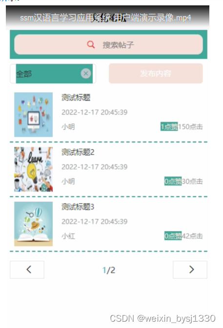 文化论坛详情页面可查看标题、发布日期、发布人、等操作,并可对论坛点赞等操作,如图5.10所示。