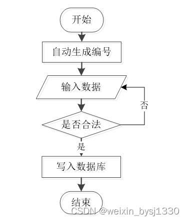 添加信息,编号系统使用自动编号模式,没有用户填写,用户添加信息输入信息,系统将自动确认的信息和数据,验证的成功是有效的信息添加到数据库,信息无效,重新输入信息。添加信息流程如图3-3所示。