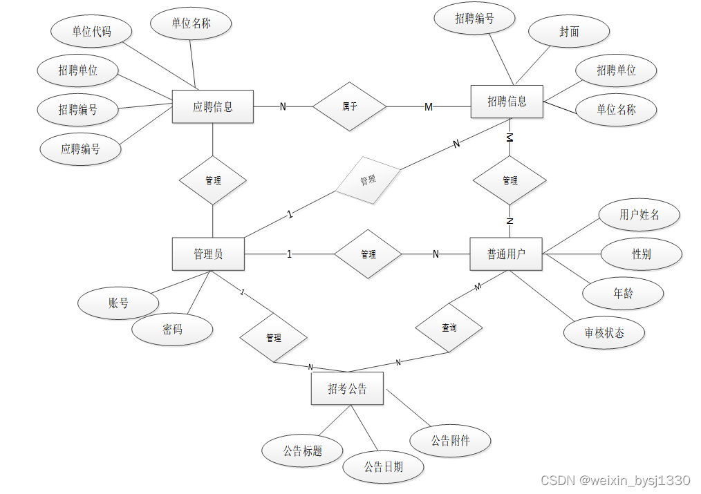 国家公务员招聘网站是中需要存储不少招聘信息,其模块功能结构,具体的结构图如下: