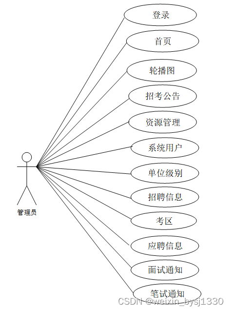 web后台管理上的管理员是维护整个国家公务员招聘网站中所有数据信息的。管理员角色用例如图2-5所示。