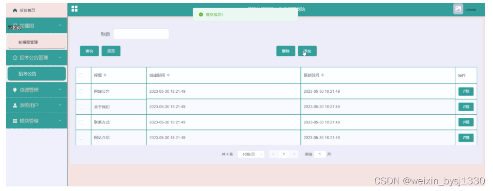 (2)轮播图:管理员点击“轮播图”菜单可以对首页展示的轮播图进行增删改查。