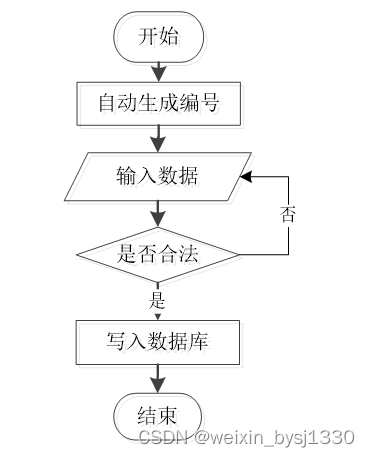 用户成功登入系统后就能够实现增加数据的操作,增加数据的编号是特定的,系统生成,用户不能随意填写,除了编号以外,其他增加信息用户自己填写,填写后的信息经过系统验证,验证合法通过就显示增加数据成功了,相反的话,就没有增加成功,图2-1显示的就是在增加数据时的流程。