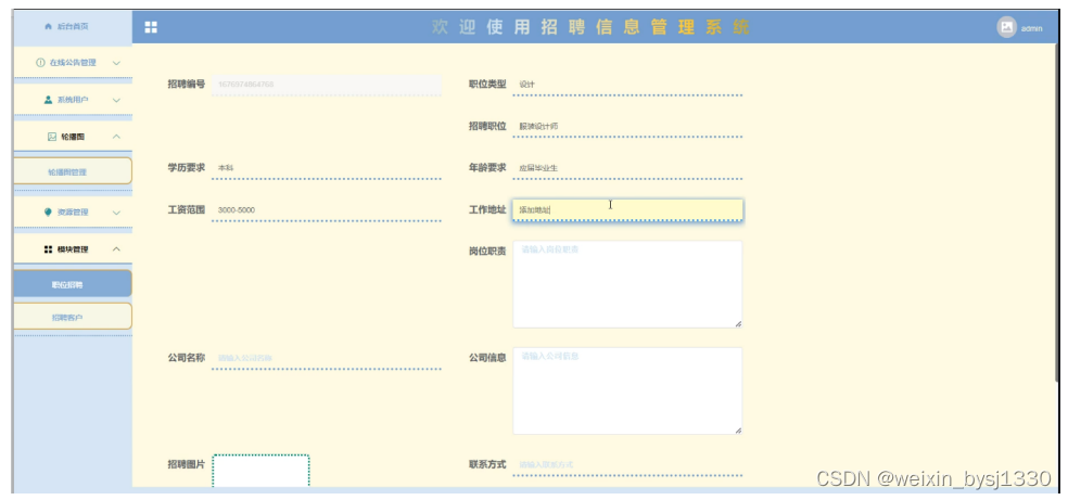 招聘客户管理模块:对招聘客户管理信息添加、修改。客户信息由管理员进行修改、添加、删除操作。