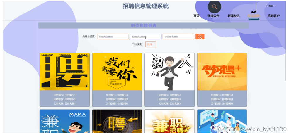 招聘客户:学生可以在线浏览招聘客户发布的岗位招聘客户。