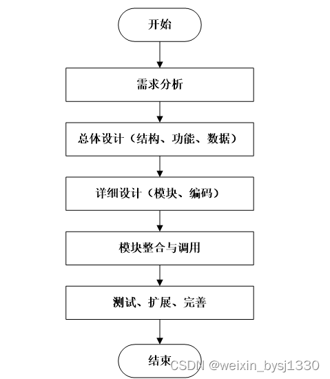 流浪动物救助系统 开发时,首先进行需求分析,进而对系统进行总体的设计规划,设计系统功能模块,数据库的选择等,本系统的开发流程如图3-1所示