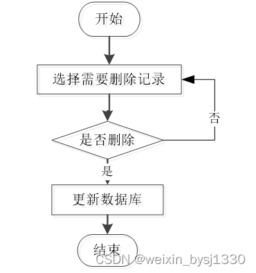 管理员可以对流浪猫狗管理信息等进行信息的删除,对要删除的信息进行选中后,点击删除按钮,系统会询问是否确定,若点击确定,则系统会删除掉选中的信息,并在数据库内对信息进行删除,删除信息流程图如图3-6所示。