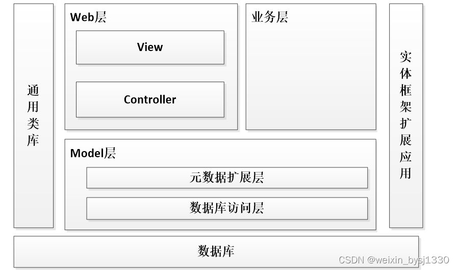 本在线考试系统的架构设计主要分为可以3层,主要有Web层,业务层,Model层。其中web层还包括View层和Controller层,Model层包括元数据扩展层和数据访问层。