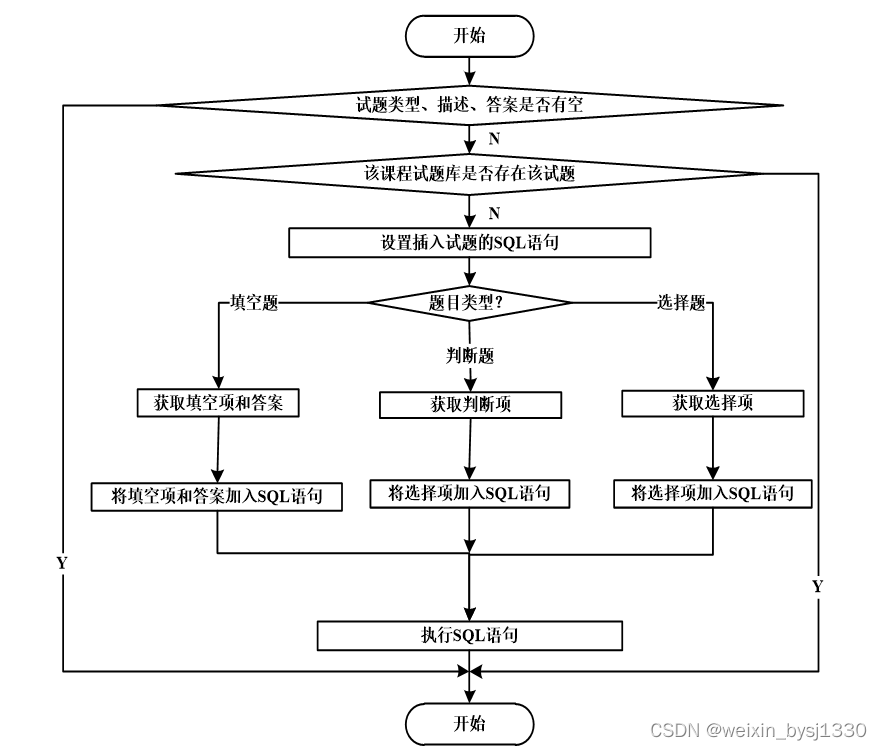 此页面的关键是编写试题信息,单击提交按钮以完成信息的添加。如果未写入完整的试题信息,例如,如果未写入试题编号,系统将给出相应的错误提示,并且无法成功输入。数据以概念的形式以onsubmit =“return checkForm()”的形式写入以进行检查,checkForm()函数是一种用于写入数据的不同类型的校对方法,是不是为空也是经过form表单中的onsubmit=”return checkForm()来检查。