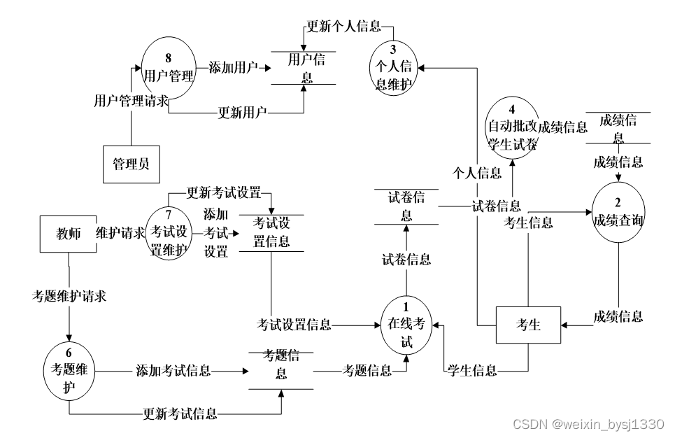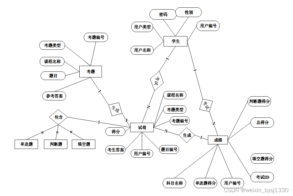 考试信息:存储平台内的数据。包括科目名称、分数、时长等数据项。