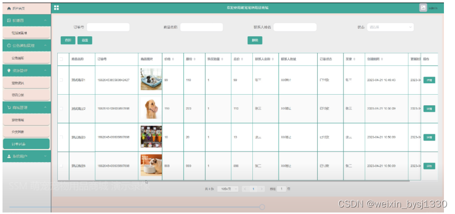 Under the influence of rapid social development, pet shopping malls continue to develop, greatly increasing the requirements for the quantity, diversity, quality, and other aspects of pet products, making the management and operation of pet shopping malls more difficult than in the past decade. Based on this reality, designing a fast and convenient cute pet product store is a very important and valuable thing. Entering the 21st century, due to the rapid development of technology and economy, the spiritual needs of the people on the non material level are becoming increasingly diverse. This system is proposed to achieve these goals. This paper systematically describes the design and implementation of the entire pet product mall, with the main functions including the following: backend homepage, announcement content (broadcast image, announcement board), system user (administrator, ordinary user), content module (pet information, information classification), pet product mall, order management, etc. It has simple interfaces, convenient applications, powerful interaction, and is completely based on the characteristics of the Internet.