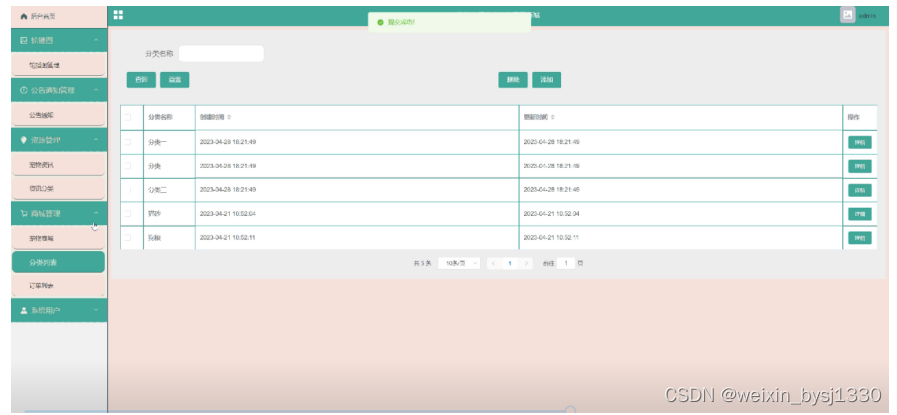 分类列表管理,在分类列表管理页面添加类别内容,还可在分类查询页面对已有的分类进行编辑删除等操作 图5-9所示