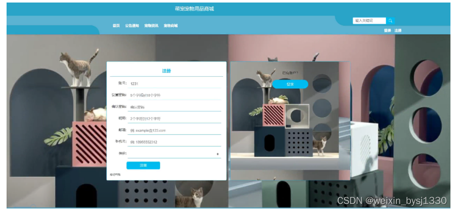 4.注册登录,宠物用品商城需要吸引客户,即通过注册来提高用户的存留率。