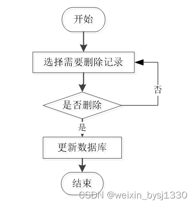 用户可选择要删除的信息进行信息删除操作,在删除信息时系统提示是否确定删除信息,是则删除信息成功,系统数据库将信息进行删除。删除信息流程图如图2-4所示。