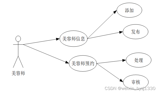 4.美容师主要负责上传美容师信息以及处理用户预约的用例图。