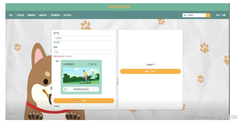 登录:使用宠物医院管理系统前是需要用户登录个人账号。