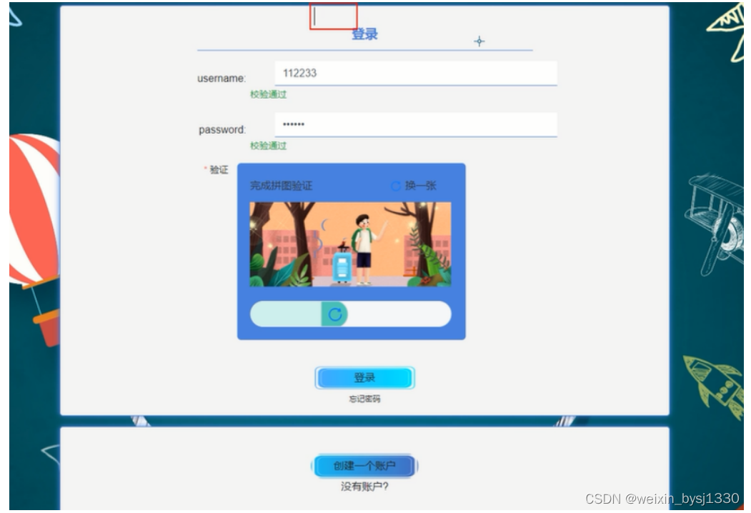 当用户注册完成后就可以登录了,输入用户名+密码,通过滑动图片验证后,点击“登录”按钮进行登录,登录界面如下图4-3所示。