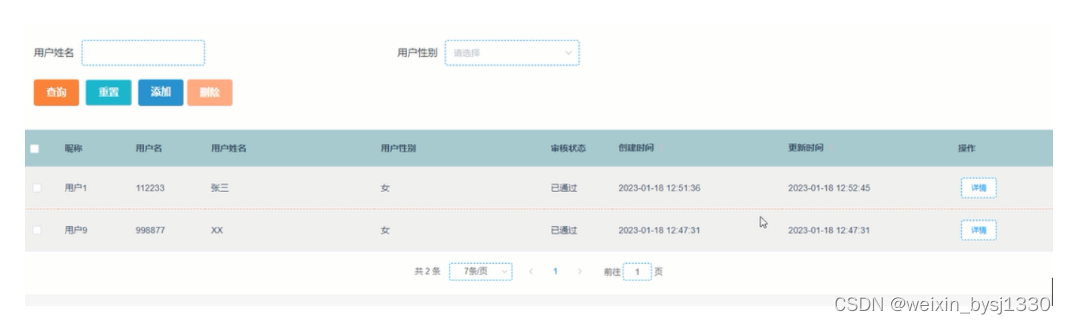 (1)ordinary_users表如表3-1所示包含了普通用户信息的中的用户姓名、用户性别、审核状态等。